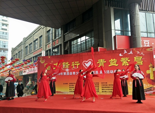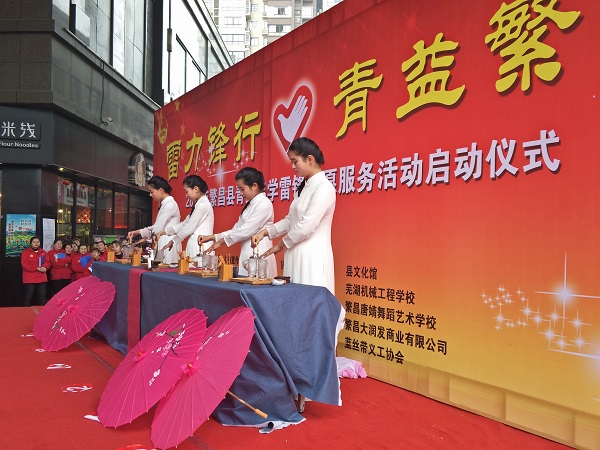 整个活动共分为两项内容:繁昌县青少年学雷锋志愿服务活动启动仪式;志愿服务活动及文艺汇演。在校团委的组织下,14名舞蹈与茶艺专业学生,为现场的观众呈现了美轮美奂的节目,赢得了阵阵掌声,受到了广泛好评。活动中, 志愿者们还参与开展宣讲雷锋事迹、散发公益手册等志愿服务活动,以实际行动践行雷锋精神。