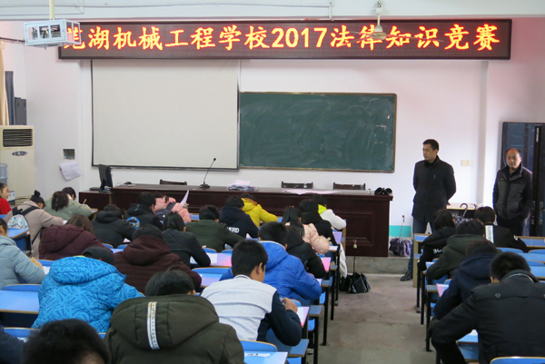 为进一步推进校园青少年普法教育工作,弘扬社会主义核心价值观,增强中职学生法制观念和法律意识,努力营造良好的校园法治环境,3月22日下午,芜湖机械工程学校成功举办了法律知识竞赛活动,全校各班的93名选手参加此次竞赛。