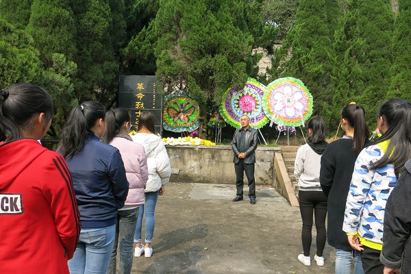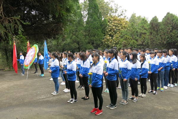 “清明时节雨纷纷,路上行人欲断魂” 清明节到来之际,为悼念革命烈士,缅怀先烈 ,3月31日上午,在校政教处、团委的共同组织下同学们来到烈士墓。校党支部委员、校长助理曹凤鸣、政教处副主任戴茂胤、团委书记蒋丽萍及全校学生干部参加了本次活动。