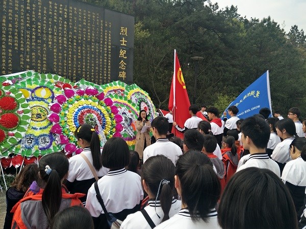 活动在庄严的国歌中开始,首先由团员与少先队员手牵手共同为烈士献上花圈,面对长眠在这里的热血英灵,凭吊忠魂,寄托对先烈们的无限敬意和绵绵哀思。少先队员发表主题演讲“不忘初心、缅怀先烈、牢记历史”,阐述了历史所赋予青年一代的责任与使命。蒋丽萍要求全体同学要铭记英烈功勋,继承先烈遗志,不忘初心,牢记使命,不辜负烈士们的遗愿,踏着烈士们的足迹奋勇向前。团委副书记卢寅带领全体庄严宣誓。随后参观了烈士事迹陈列馆。