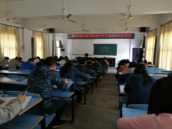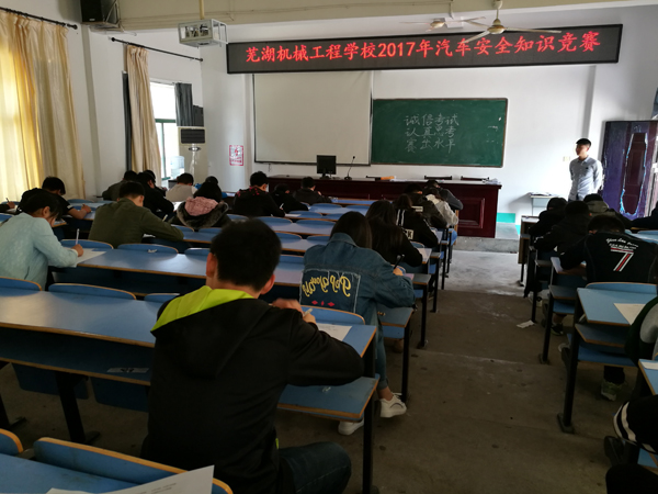 为了激发同学们对汽车理论知识、交通法规、安全驾驶知识的兴趣与热情,提高学生的交通安全意识,增强自我保护能力 ,4月13日下午,芜湖机械工程学校在阶梯教室举行了汽车安全知识竞赛,此次活动由汽修电子组承办,该组成员齐心协力,进行组织,认真制卷、监考、阅卷,评出一二三等奖36人,此次活动给校园中对汽车知识有兴趣的学生搭建一个展示、挑战自我的舞台,丰富了学生课余文化生活。
