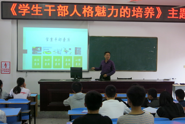 此次培训邀请校师训办主任徐亮主讲,徐老师从学生干部应具备政治素质、知识素质、能力素质、品德素质和心理素质五个方面入手,通过大量的案例帮助学生干部分析学干人格魅力如何培养,明确学生干部肩负的职责,传授学生干部在班级管理工作中具体的做法,参训学生干部从中受益匪浅。