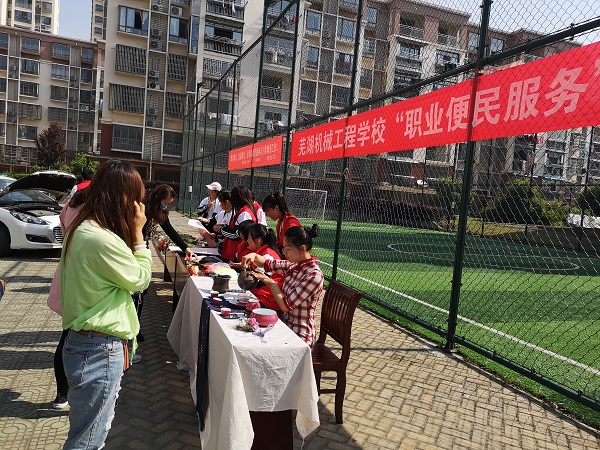 活动中,茶艺同学教社区居民如何选茗、如何择水、烹茶技术、茶具艺术、环境的选择创造等一系列内容;手工制作志愿者们向社区居民展示了职业教育特色,并将制作的作品送给居民;艺术插花志愿者和社区的居民讲解了花应该要如何搭配,如何去选花,怎么样去修剪,以及如何固定等等,并亲自手把手的教居民如何去操作;环境卫生宣传志愿者通过发放宣传单等形式,向居民宣传环保小知识;汽车维修教师带领学生指导社区居民就汽车维修的基本常识进行了宣传。