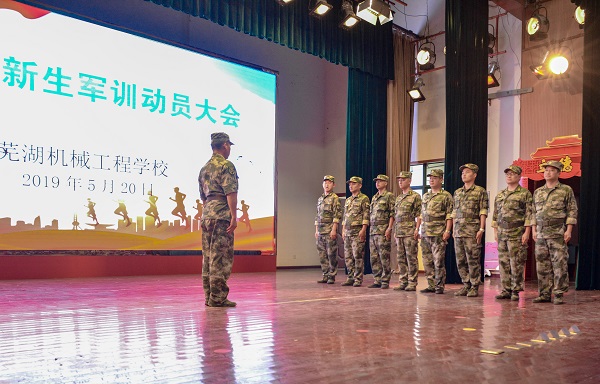 5月20日下午,芜湖机械工程学校2019春级、2018秋级学生军训动员大会于多功能报告厅顺利举行。动员大会由芜湖机械工程学校副校长张文健主持,繁昌县教育局党委委员、工会主席刘海滨、繁昌县人武部保障科科长姚波、繁昌县教育局教育股股长、招生办主任陈晓明、芜湖机械工程学校校长刘琳、党支部书记张玉、副校长桂华、副校长李鹏出席了此次活动。