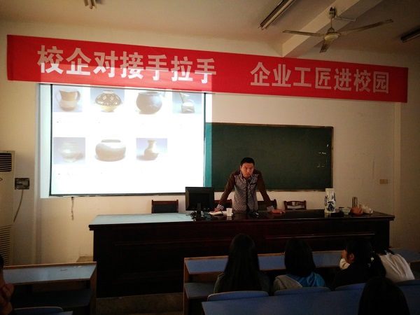 按照既定计划,举办了“校企合作手拉手,企业工匠进校园”主题活动。由芜湖晟豪实业有限公司技术部主任刘志根面向2016春级社会文化艺术专业学生开展繁昌窑艺术陶瓷及制作工艺讲座。刘志根的精彩演讲,深深地吸引了在场的听众,不仅丰富了同学们的知识,提高艺术欣赏水平,同时真实地感受到锲而不舍、精益求精的大国工匠精神。活动圆满成功,收到良好效果。