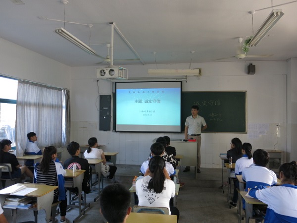 为更好地广泛开展社会主义核心价值观宣传教育,引导中职学生做一个诚实守信的人,在他们的心灵中播下诚信友善的种子。2016年9月12日,芜湖机械工程学校由政教处组织各班级开展“诚信教育”主题班会活动。