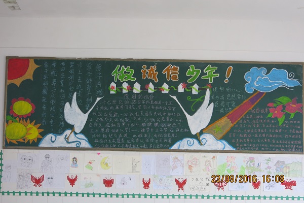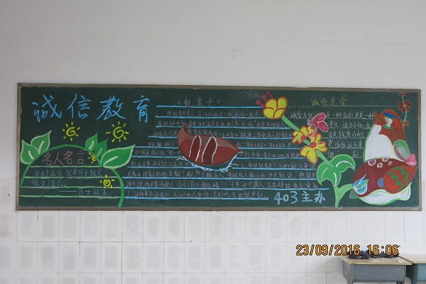 活动通知下发后,各班级积极准备,精心设计版面,各自展现出不同的风格,采用多种艺术形式贴近“诚实守信”主题,从多角度、多方位宣传“诚信”的重要意义,启发学生们进一步思考如何在学习、生活中树立“诚信”意识。
