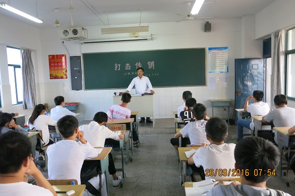 为了让全体中职学生认识传销的危害,切实保护学生及家庭的合法权益,2016年9月26日,芜湖机械工程学校由政教处组织各班级开展以“打击传销”为主题的班会活动。