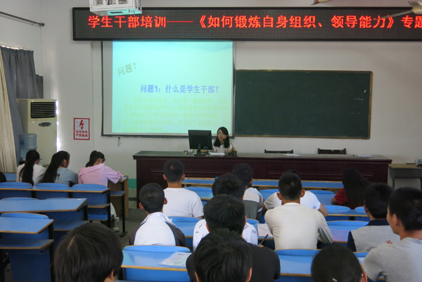 优秀的学生干部必须对集体活动具有出色的组织协调能力,对班级管理具有一定的领导能力。根据学生干部培训计划安排,5月17日下午,芜湖机械工程学校由政教处组织全体学生干部开展“如何锻炼自身组织、领导能力”专题培训活动,由校团委书记蒋丽萍主讲。