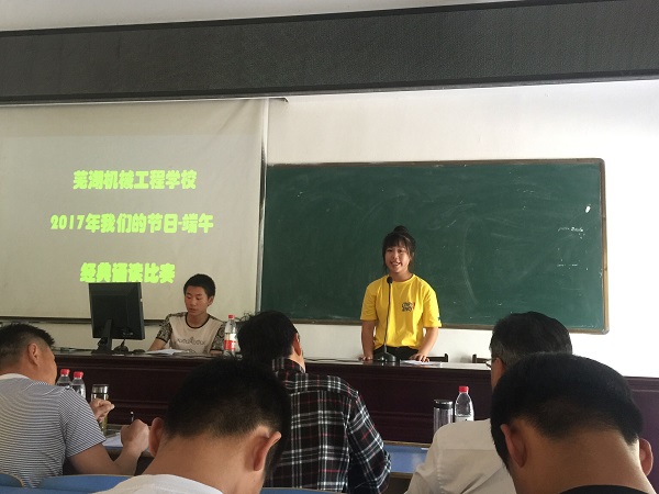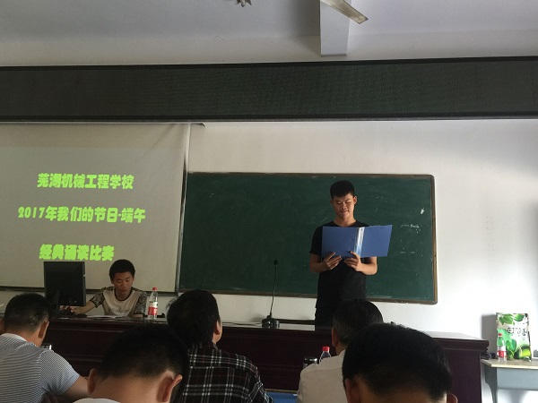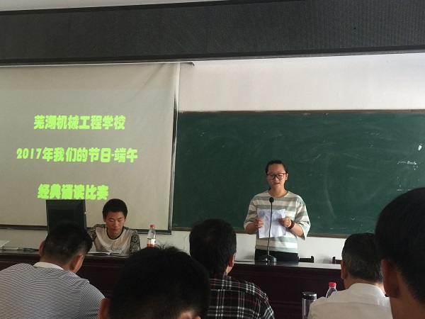 端午节是中华民族的传统节日,为了传承和弘扬中华民族优秀的传统文化,引导学生在诵读经典美文中感受传统文化的博大精深和巨大魅力,5月27日下午,芜湖机械工程学校在校阶梯教室举行了 “我们的节日——端午” 经典诵读比赛。