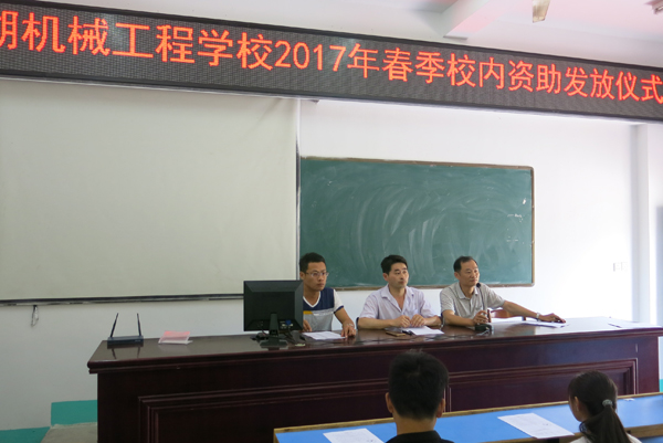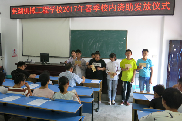 根据上级文件要求,学校每学期拿出行政事业性收入的5%用于校内助学金发放,发放对象为品学兼优和家庭困难的学生。6月4日上午第三节课,芜湖机械工程学校在校阶梯教室举行2017年春季校内助学金发放仪式,活动由政教处主任俞晓勇主持,校分管副校长张文健、校总务处主任俞同贞及政教处副主任戴茂胤参加此次活动。