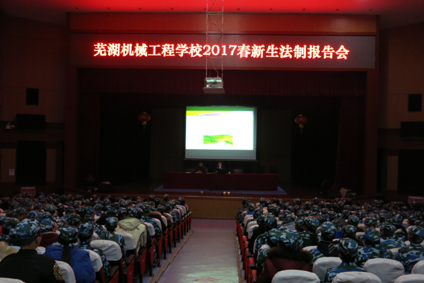 为进一步增强2017春新入学学生的法制观念,根据军训科目安排,元月9日晚,芜湖机械工程学校在多功能报告厅开展法制宣传教育活动。学校邀请到繁昌县人民检察院公诉科副科长王志江为学生做了题为《树立正确的价值观,自觉抵制违法犯罪》的法制讲座。