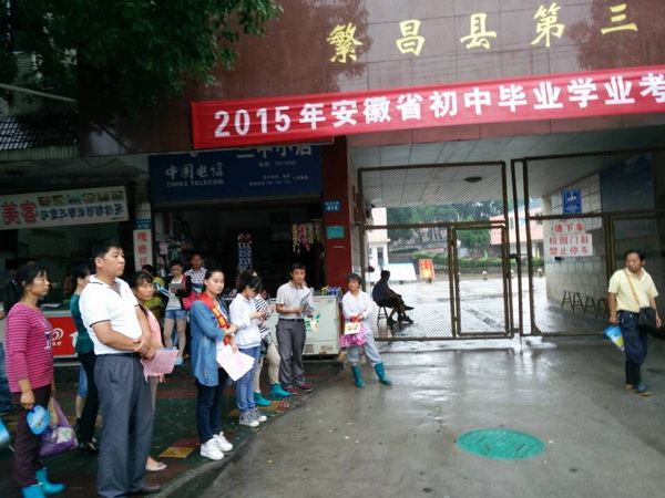 每年的中考,各中考考点门外是考生及家长最集中的地方,芜湖机械工程学校把握大好时机,提前做好宣传条幅在三中、四中两考点悬挂,2015年6月16日上午由招生就业办的两名老师分别带领几名学生在两考点早早架起了大幅的招生简章,向家长散发招生简章,接受家长的咨询。有很多家长主动上前索取招生简章,询问学校的办学情况、就业情况,升学方面的政策。(强光佐 特约通讯员:蒋宗旗)