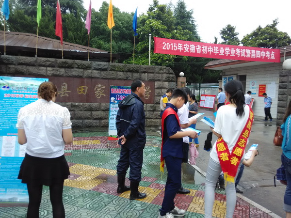 为做好做实今年的秋招工作,芜湖机械工程学校多管齐下,主动出击,把握中考契机,于6月16日上午,安排招生就业办的两名教师分别带领一些学生赴三中、四中两考点作招生宣传。