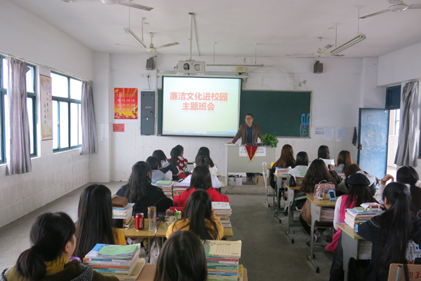 班会课上,各班主任围绕着廉洁文化的时代背景、伟人与廉洁的故事以及开展廉洁文化进校园的目的和意义等内容展开教育宣传。通过视频资料、讲故事等形式让学生了解廉洁为政的重要性,认识了廉洁的社会意义,引导学生懂得廉洁从我做起,从小事做起,做一个诚实正直的人,树立“敬廉崇洁”、“廉荣贪耻”的价值观念。