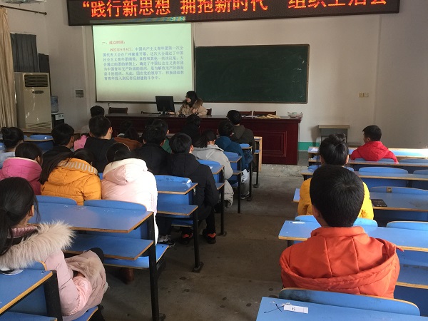 2017年12月8日芜湖机械工程学校团委在校阶梯教室举办了以“践行新思想 拥抱新时代”为主题的团课活动。