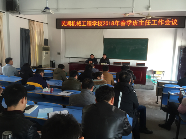 根据学校工作安排,2月26日下午,芜湖机械工程学校召开了2017—2018学年度第二学期班主任开学工作会议,会议由政教主任俞晓勇主持,校分管德育副校长刘琳、总务处主任俞同贞、教务处主任潘芬、招生就业办副主任陈冲锋以及全体班主任参加了会议。会议就新学期学生报名以及相关工作进行了具体布置。