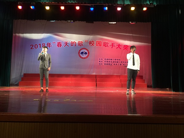 本次活动由芜湖机械工程学校主办,团委承办,关工委、政教处、体艺组协办,经过3场小组赛选拔20名优秀选手进入复赛,最终选出15名选手入围决赛,参加了今天的校园十大杰出歌手角逐。15名选手精心准备、尽展歌喉,用昂扬的歌声讴歌青春,他们尽情展现自己的才华,把最动听的歌声奉献给了观众。全体师生参加了本次大赛。现场气氛热烈,台上台下相互响应,会场就像一个音乐的聚会,欢乐的海洋。活动最后,孟哲老师为大家带来歌曲《黑龙江岸边洁白的玫瑰花》、和王琴老师合作演唱的《贝加尔湖畔》将活动现场推向了高潮。随着孟老师和王老师的演唱结束,许家林等10位歌手脱颖而出获得了芜湖机械工程学校第四届“春天的歌”校园歌手大奖赛十大杰出歌手。