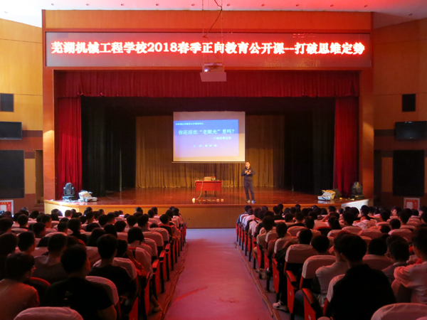 根据《芜湖机械工程学校2018年职业教育活动月工作方案》计划安排,5月9日下午,芜湖机械工程学校由政教处组织开展正向教育公开课活动。公开课主题为《打破思维定势》,由繁昌县正向教育工作室主持人、华佑教育新家长成长网络学院联合创始人、国家级心理咨询师徐跃斌主讲。