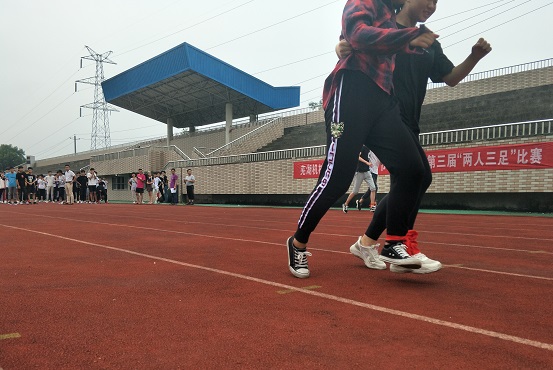通过此次比赛促进了同学们之间的交流和互动,让我们更加懂得合作需要默契,团结就是力量! “两人三足”比赛,丰富了同学们的业余生活,也增加了节日的气氛,同时增强了集体意识和团结协作精神。
