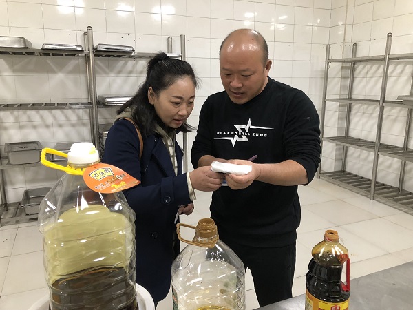 10月10日上午,18春社会艺术班殷慧吉的家长一大早来到校园食堂,对食堂卫生管理情况、食材采购环节、饭菜加工流程、食材的生产日期以及保持期等方面进行深入了解。中午殷慧吉家长同学生一起就餐。