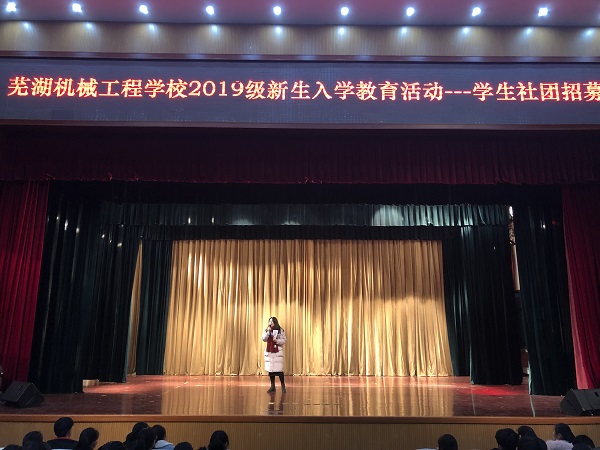 1月9日下午,芜湖机械工程学校2019级新生入学教育活动—学生社团招募在多功能报告厅开展。2019级全体新生及各班级辅导员参加了活动,活动由校团委副书记卢寅主持。