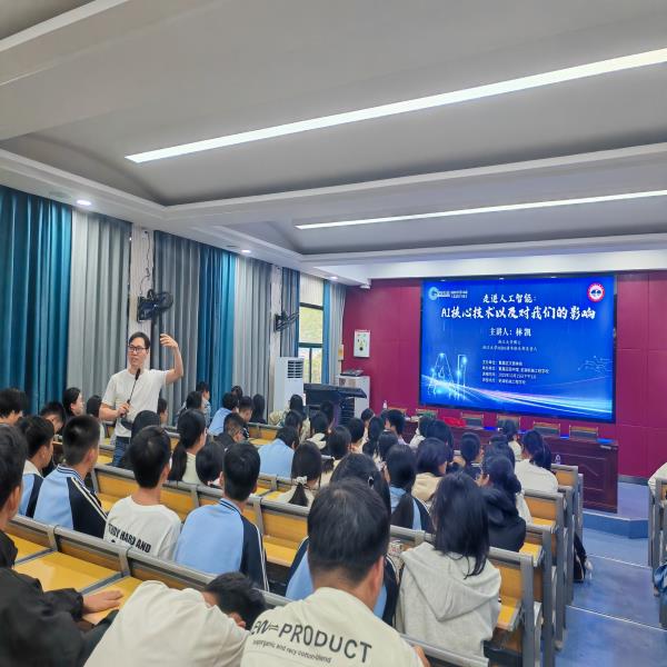 讲座中,林凯博士没有采用晦涩的学术理论堆砌,而是以 “AI 如何改变我们的日常工作” 为切入点,用生动的案例展开讲解。他结合电商平台智能推荐、工业领域智能质检等与学生专业紧密相关的实例,通俗解读机器学习、深度学习等 AI 核心技术原理,还针对计算机应用、电子商务专业学生的职业需求,给出 “从基础 AI 工具学习入手,逐步提升数据处理与智能应用能力” 的实用建议,鼓励大家主动探索 AI 与专业的结合点。台下学生时而低头记录关键要点,时而举手提问,互动环节气氛热烈,不少学生表示 “博士的讲解让复杂的技术变得易懂,还能直接用到未来学习中”。