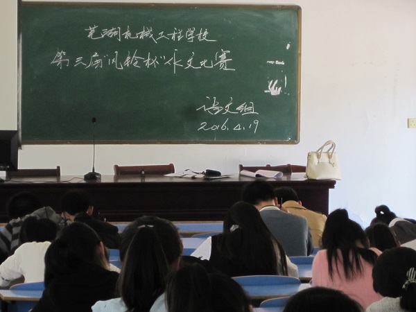 2016年4月19日下午,芜湖机械工程学校在阶梯教室举行了第三届“风铃杯”学生作文比赛,这次比赛由语文组组织开展。