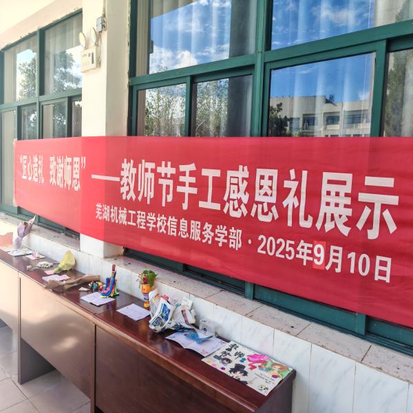 9 月 10 日,芜湖机械工程学校信息服务学部开展 “匠心造礼,致谢师恩” 手工感恩礼展示活动。此前 9 月 5 日起,学部学生利用课后、周末,用彩绳、黏土等基础材料或环保材料创作手工作品,附感谢语及姓名卡。9 月 9 日各班选 3-5 件优秀作品提交。教师节当天,作品集中展示并由学生代表赠予教师,既锻炼学生动手能力,又浓厚尊师氛围。