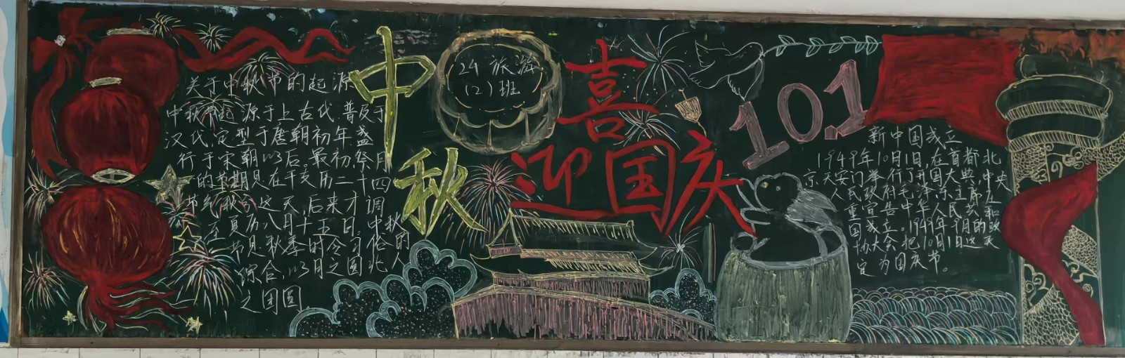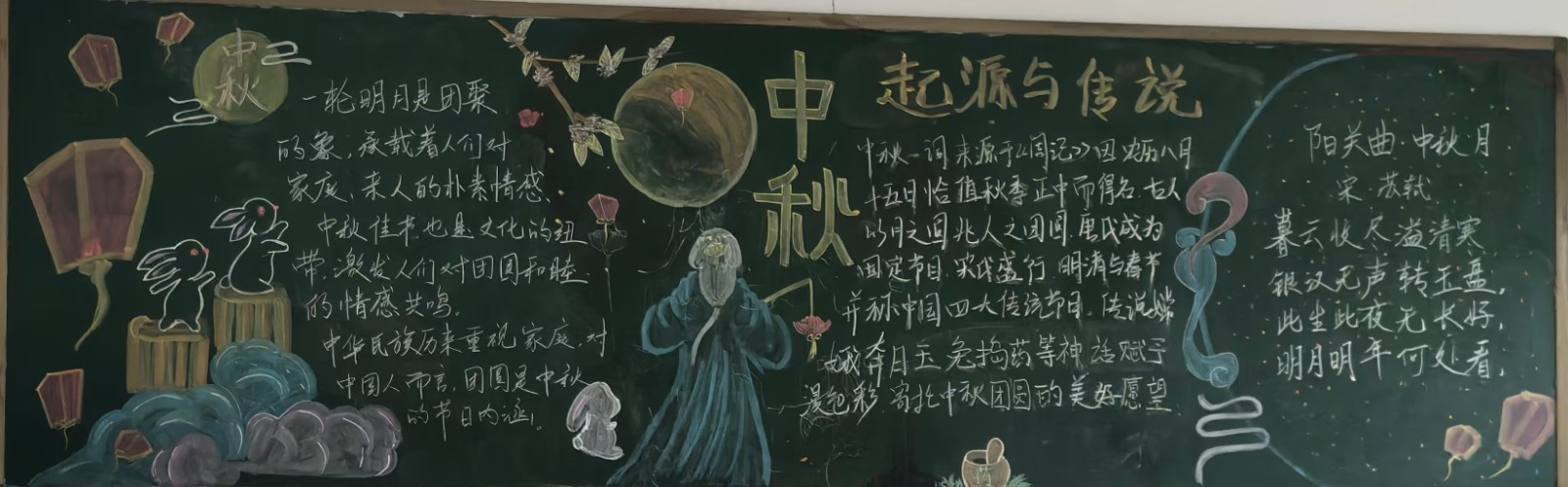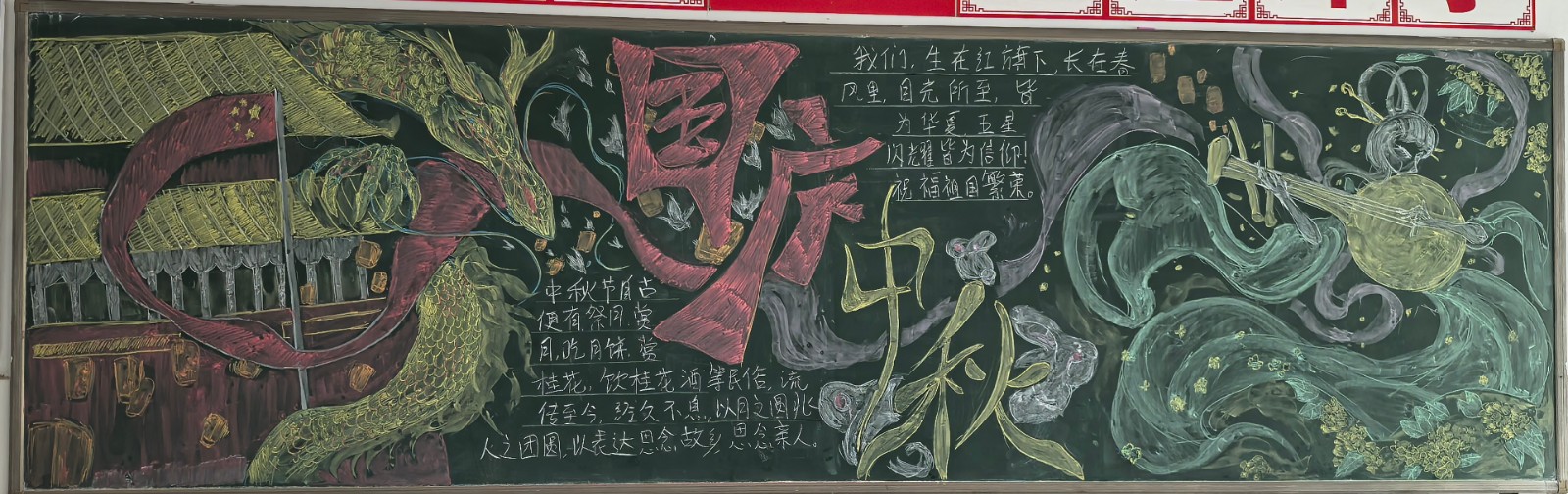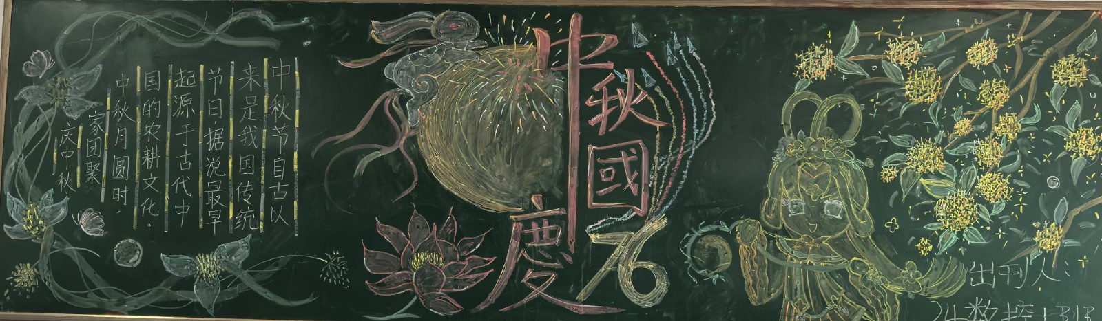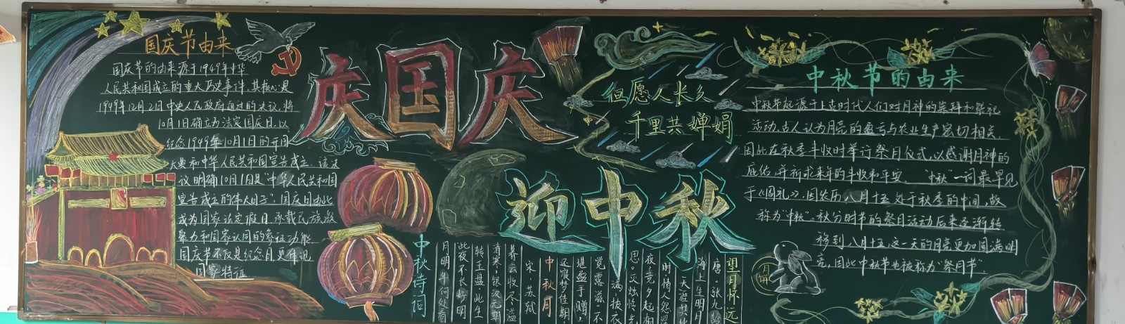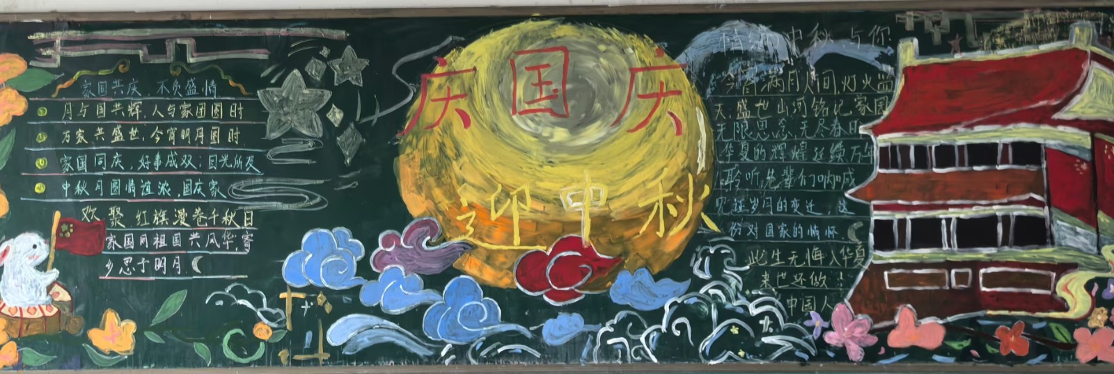 随后,全校范围内的主题黑板报评比活动有序推进。各班级师生共同构思、精心设计,将中秋的团圆意象与国庆的喜庆元素巧妙融合。黑板报内容丰富,涵盖中秋传说、国庆知识、手绘插画等板块,版面布局新颖美观,充分展现了学生们的创造力与审美能力。经过评审组从内容、设计、创意等维度的综合评定,最终评选出一二三等奖。