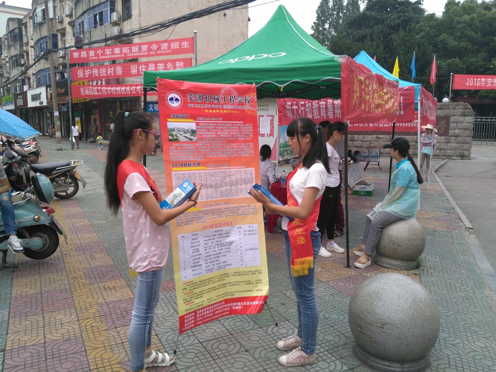 每年的中考,各中考考点门外是考生及家长最集中的地方,芜湖机械工程学校把握大好时机,走出校园,走上街头,在中考期间来到各中考考点直接面对家长散发招生简章,并主动接受家长的咨询。起到良好的宣传效果。