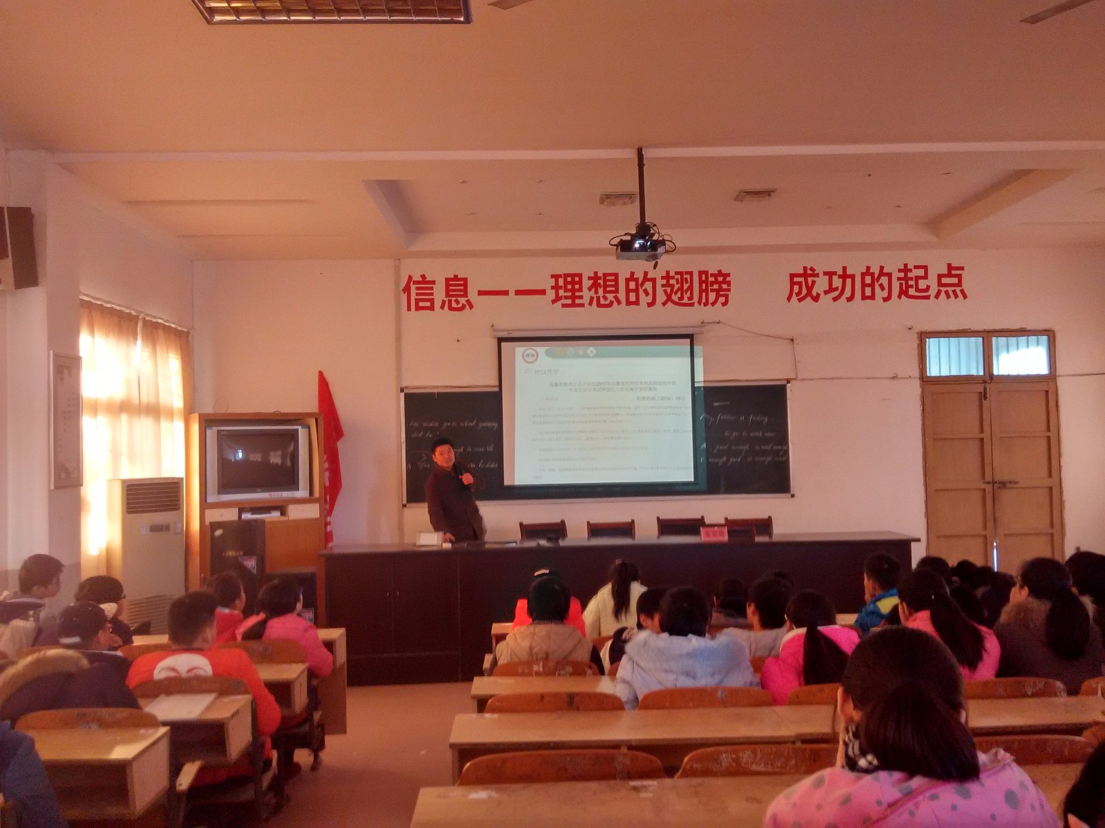 2016年12月23日下午,芜湖机械工程学校春招政策宣讲团一行来到黄浒初中,在黄浒初中领导和班主任的组织下,和全体初三学生进行交流。