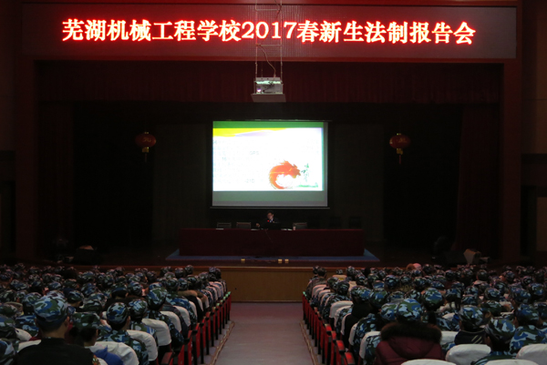 为进一步增强2017春新入学学生的法制观念,根据军训科目安排,元月9日晚,芜湖机械工程学校在多功能报告厅开展法制宣传教育活动。学校邀请到繁昌县人民检察院公诉科副科长王志江为学生做了题为《树立正确的价值观,自觉抵制违法犯罪》的法制讲座。
