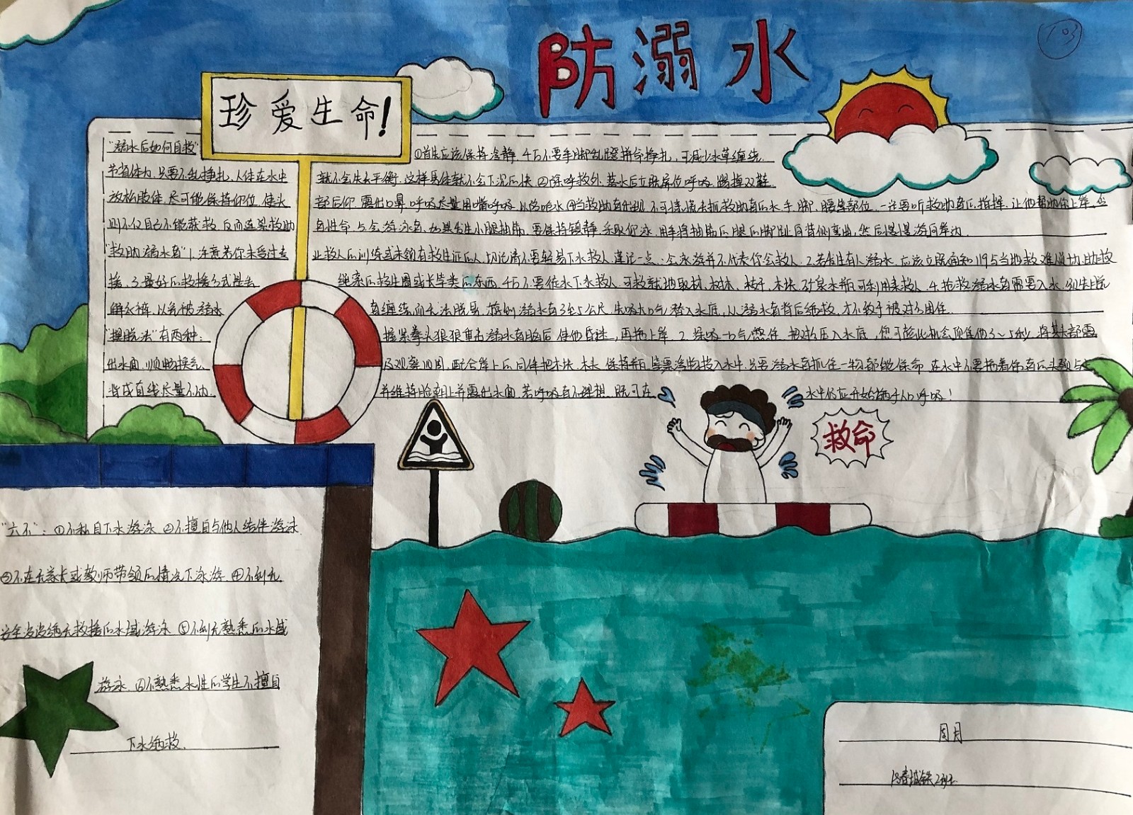 随着梅雨天气的到来,各地域水位都在上涨,溺水事件也进入高发时期,校园防溺水安全教育尤为重要。为增强全校师生的防溺水安全意识,有效预防中职学生溺水事件的发生,芜湖机械工程学校由学生处组织开展以“防溺水安全”为主题的学生手抄报评比活动。