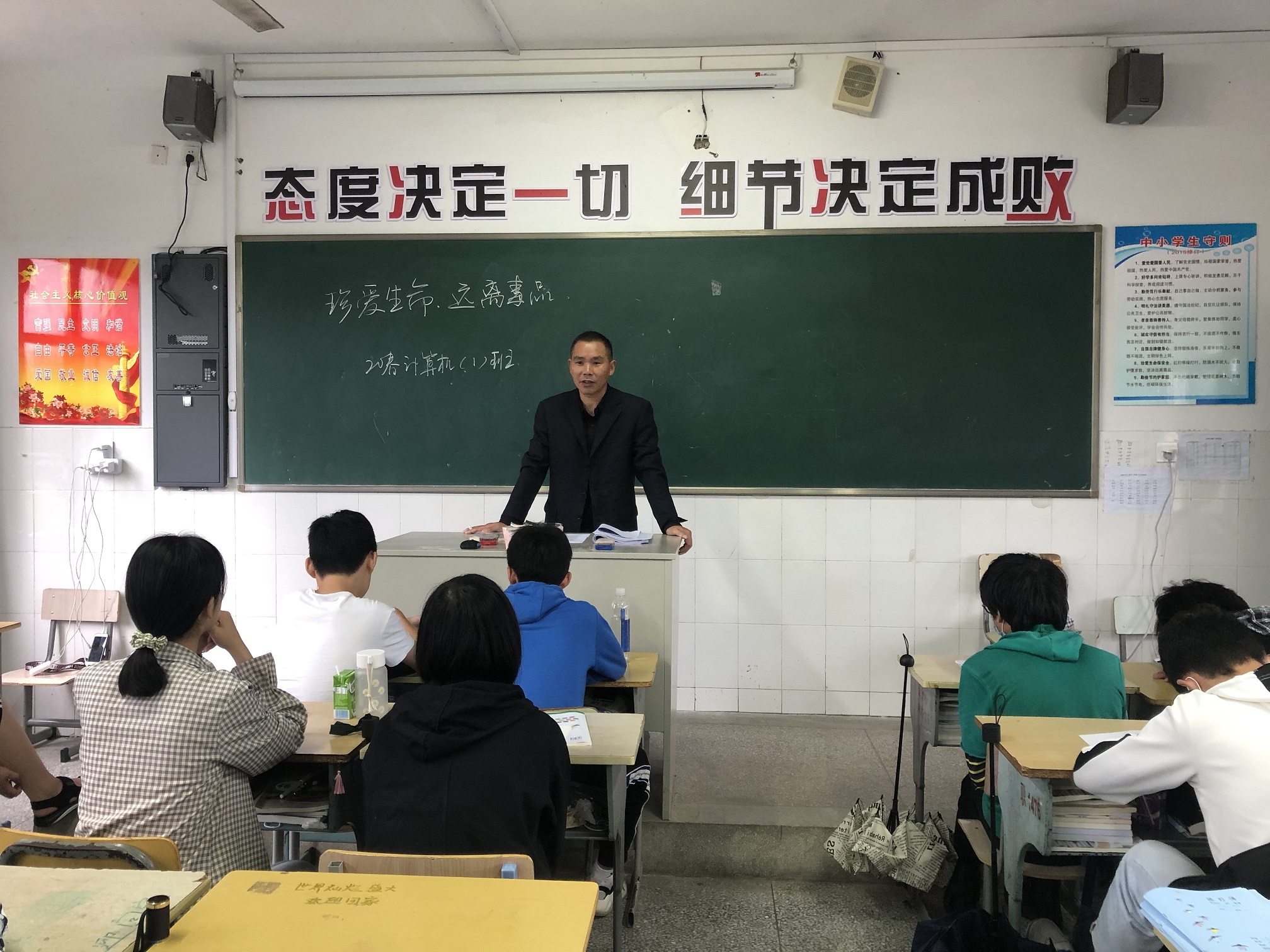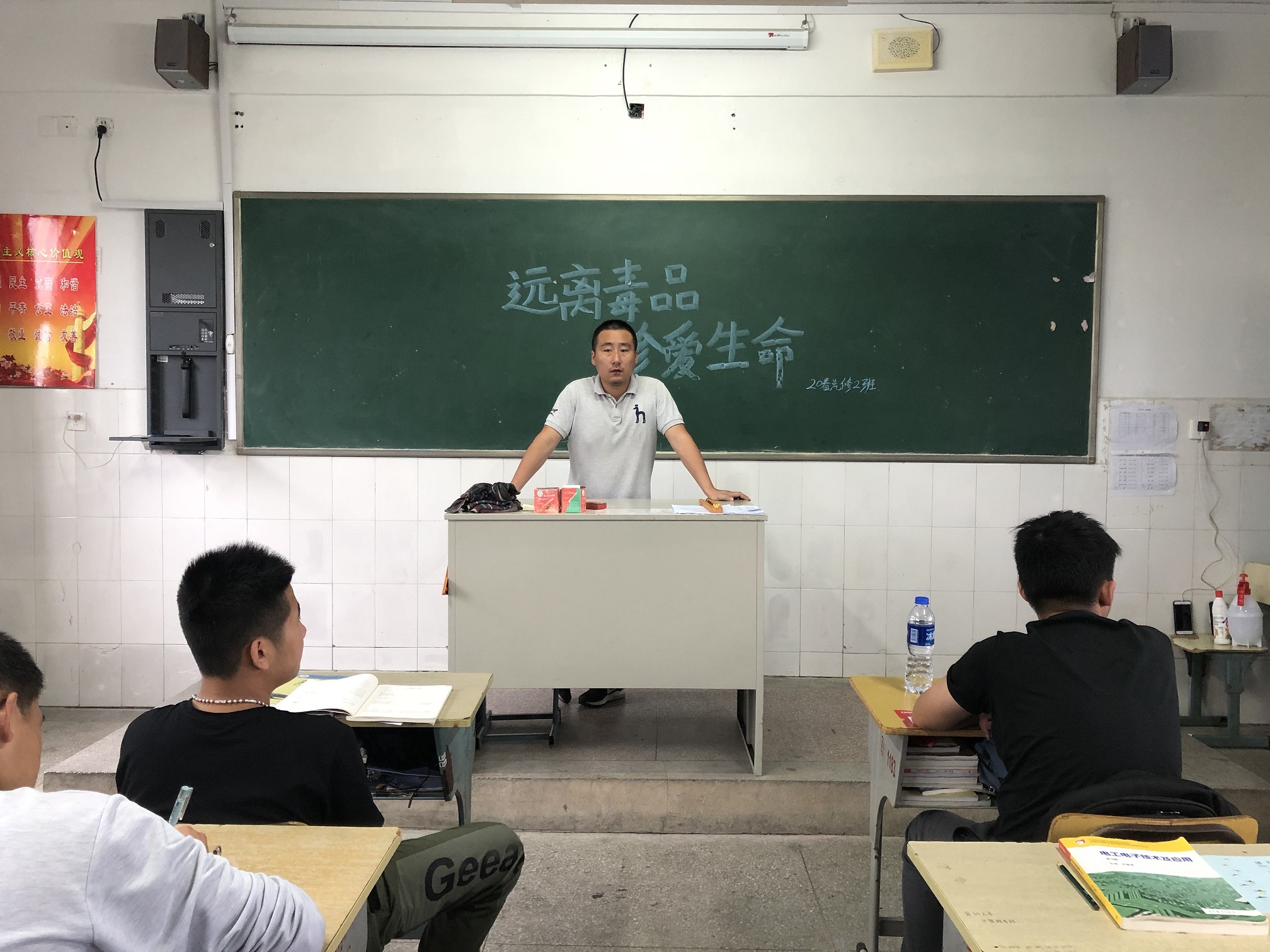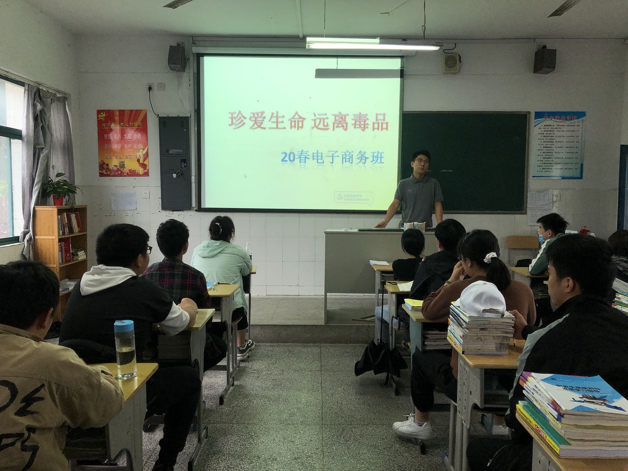 各班级积极组织开展活动,过程中班主任组织学生观看“毒品预防教育片”,并发起主题讨论,同学们各抒己见,说出自己对毒品预防的观点;有的班级利用投影让学生们认识毒品的种类、了解毒品的危害、青少年接触毒品的可能性,青少年如何做到预防接触毒品。