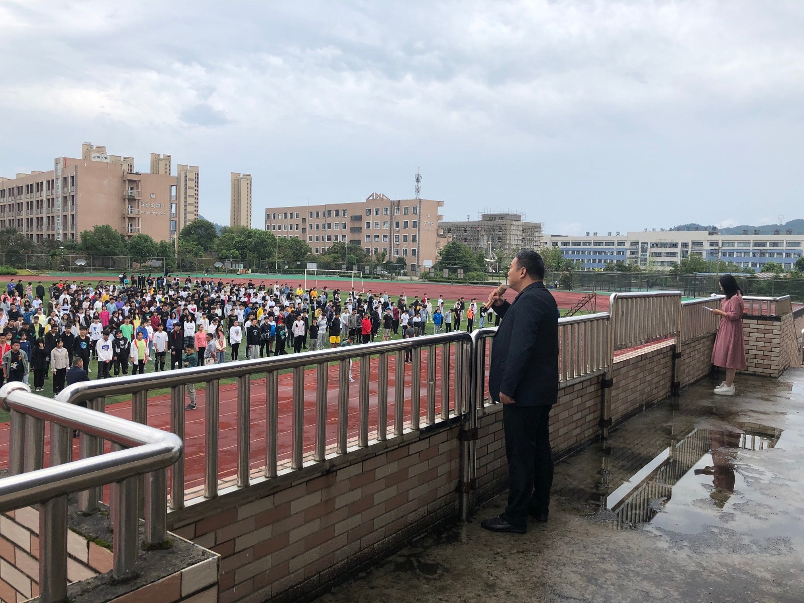 随后,学生处主任蒋丽萍向本次疏散演练总指挥刘琳校长汇报参加演练活动人数。最后刘琳校长对本次疏散演练过程作主题发言“牢记历史,勿忘国耻;不忘初心,砥砺前行”,提醒同学们要增强自己的爱国主义情怀;同时鼓励他们把握好大好时光,为祖国的日益强大而努力奋斗。