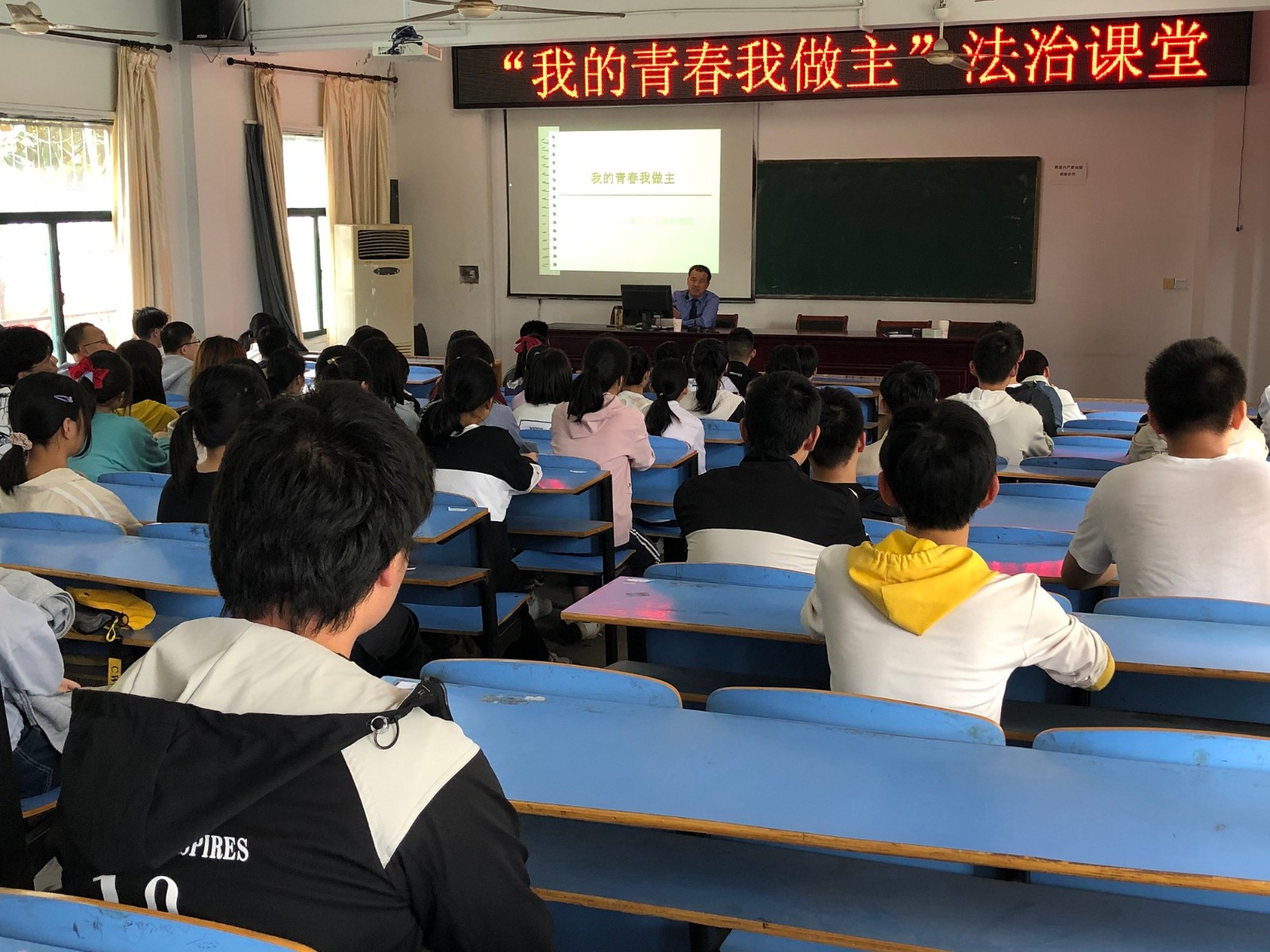 2020年是全面建成小康社会和“十三五”规划收官之年,也是“七五”法治宣传教育的最后一年。为增强同学们的法制观念,提高学生的法治意识,2020年9月23日下午,芜湖机械工程学校由学生处组织新生班级在阶梯教室开展“我的青春我做主”为主题的法治课堂教育活动。