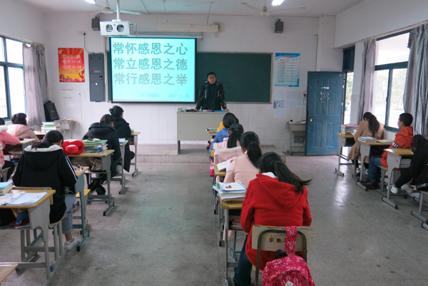 11·23是感恩节,为进一步增强中职学生感恩意识,引导每一位学生懂得感恩国家资助政策、感恩父母、感恩学校、感恩老师,根据学校学期德育工作计划,结合学校学生特点,1120日,芜湖机械工程学校由政教处开展感恩教育主题班会活动。