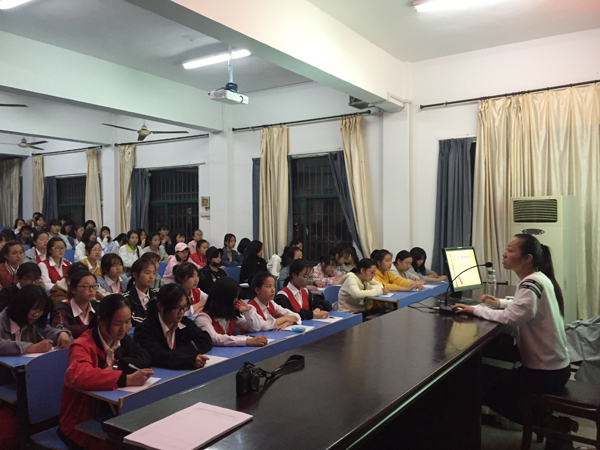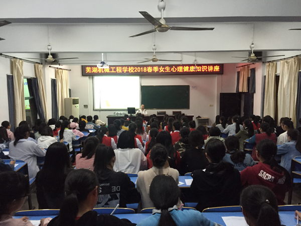 4月17日晚,芜湖机械工程学校由政教处组织2018新入学的所有住校女生在校阶梯教室听由心理咨询师潘芬主讲的《我的青春最美好》心理健康知识讲座。