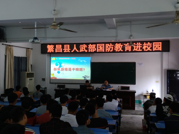 为进一步增强大学生的国防意识和国防观念,进一步推动学校国防教育深入普及。5月31,芜湖机械工程学校由政教处组织开展国防教育宣传进校园活动,此次活动由繁昌县人武部政治部委员王浩主讲。