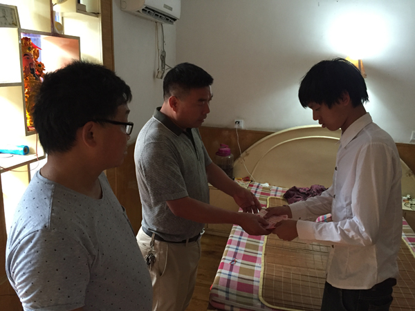 慰问小组来到家庭困难学生的家中,和学生及其家人亲切的交谈,询问和了解学生家庭经济、学习生活等基本情况,宣传暑期防溺水、消防、交通等安全教育常识,强调安全教育时刻不得松懈。刘琳对走访的学生提出几点希望,希望他们努力学习,掌握专业技能,做到自立自强。活动最后刘琳代表学校将本次慰问金发放到家长手中,学生及家长深受感动。