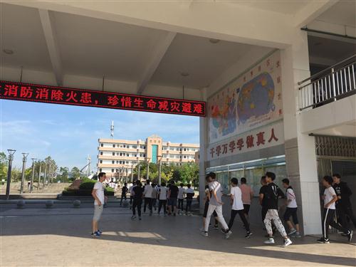 开展消防安全应急疏散演练活动。校成立消防安全应急工作领导组,由学生处制定防火减灾紧急疏散活动方案,班会课下课时,校园内警报信号响起,全校师生纷纷低头弯腰快速撤离教室、办公室,按照事先制定的逃生撤离路线紧急疏散到学校操场。