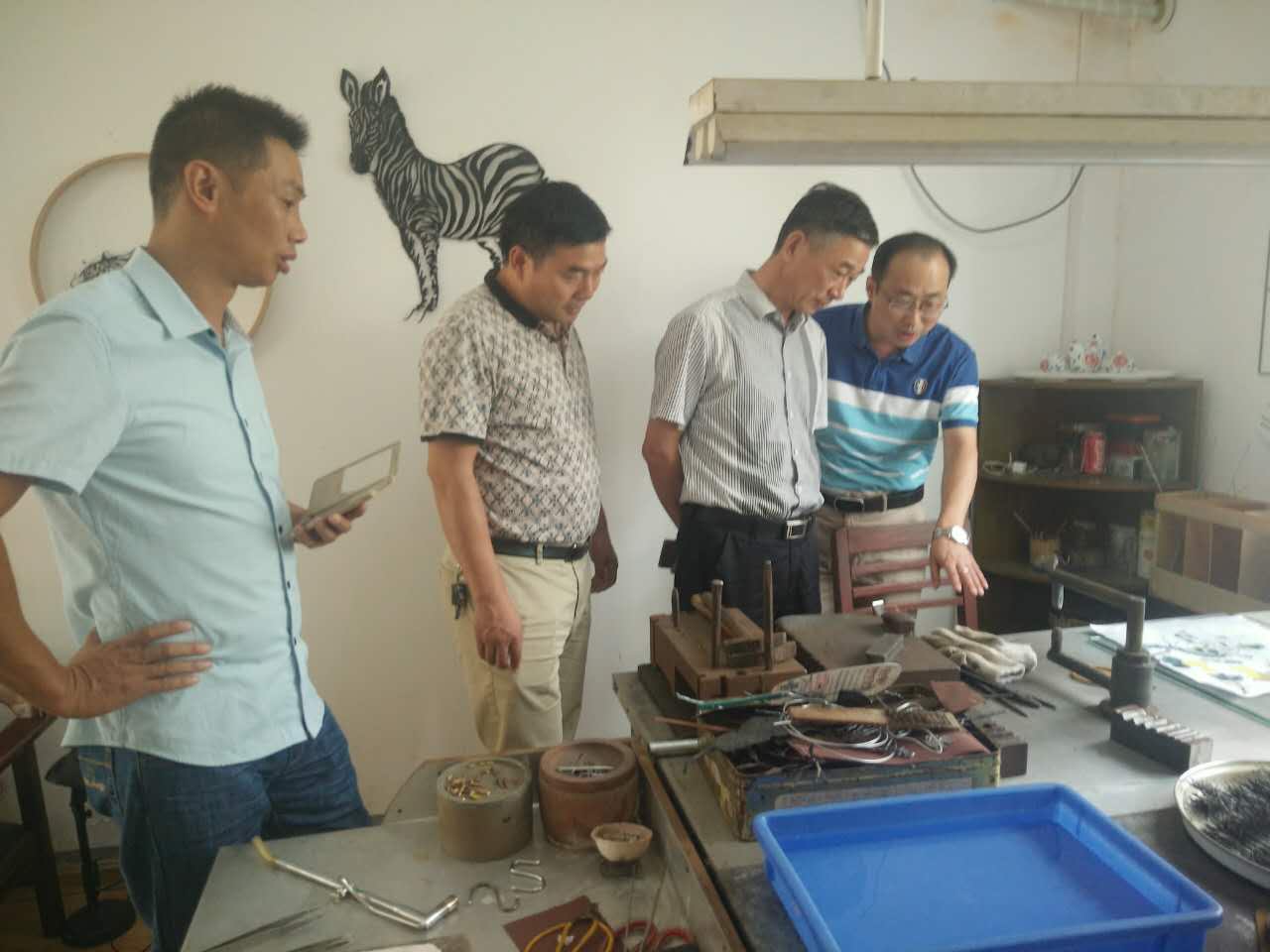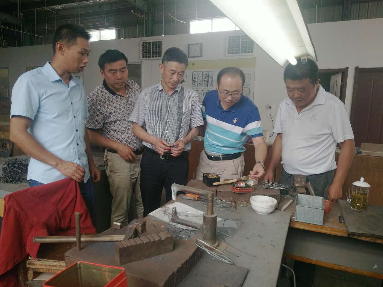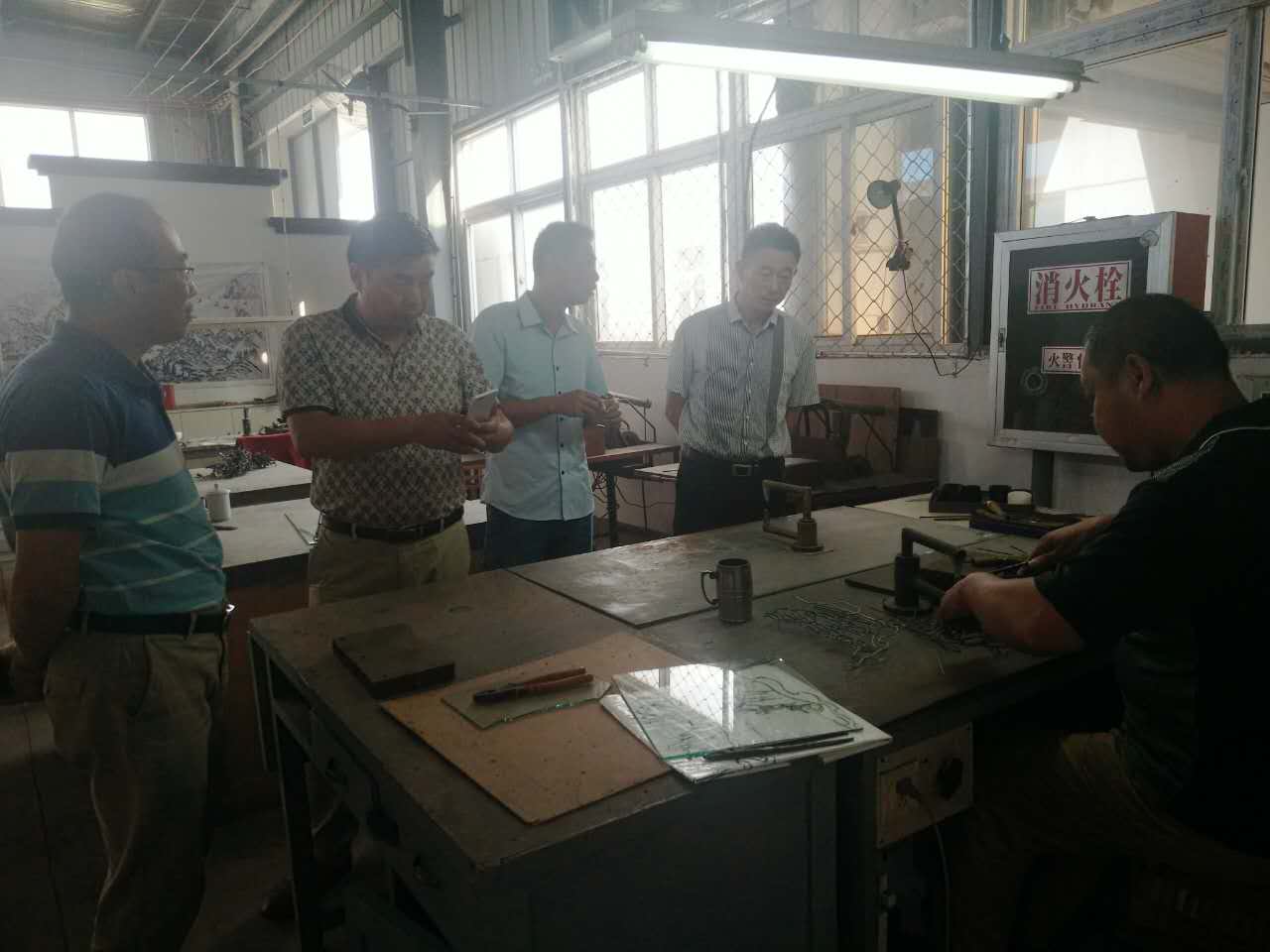 王校长一行首先参观了安徽机电职业技术学院铁画制作基地,观看了铁画师傅现场手工制作铁画的全过程。接着参观了展厅内摆设有序的铁画和工艺品,随后进行了座谈,听取了安徽机电职业技术学院成教院院长王文浩对芜湖铁画的历史沿革、目前现状、未来发展的情况介绍。交流中,王校长一行对该基地为芜湖铁画的传承发展所做出的贡献表示赞赏,并将继续学习工匠精神,发扬传承好中国传统文明技艺。为了深化中高职衔接,王校长就学校准备和机电学院联合开展芜湖铁画相关合作事宜进行了详细洽谈,并初步达成合作协议。
