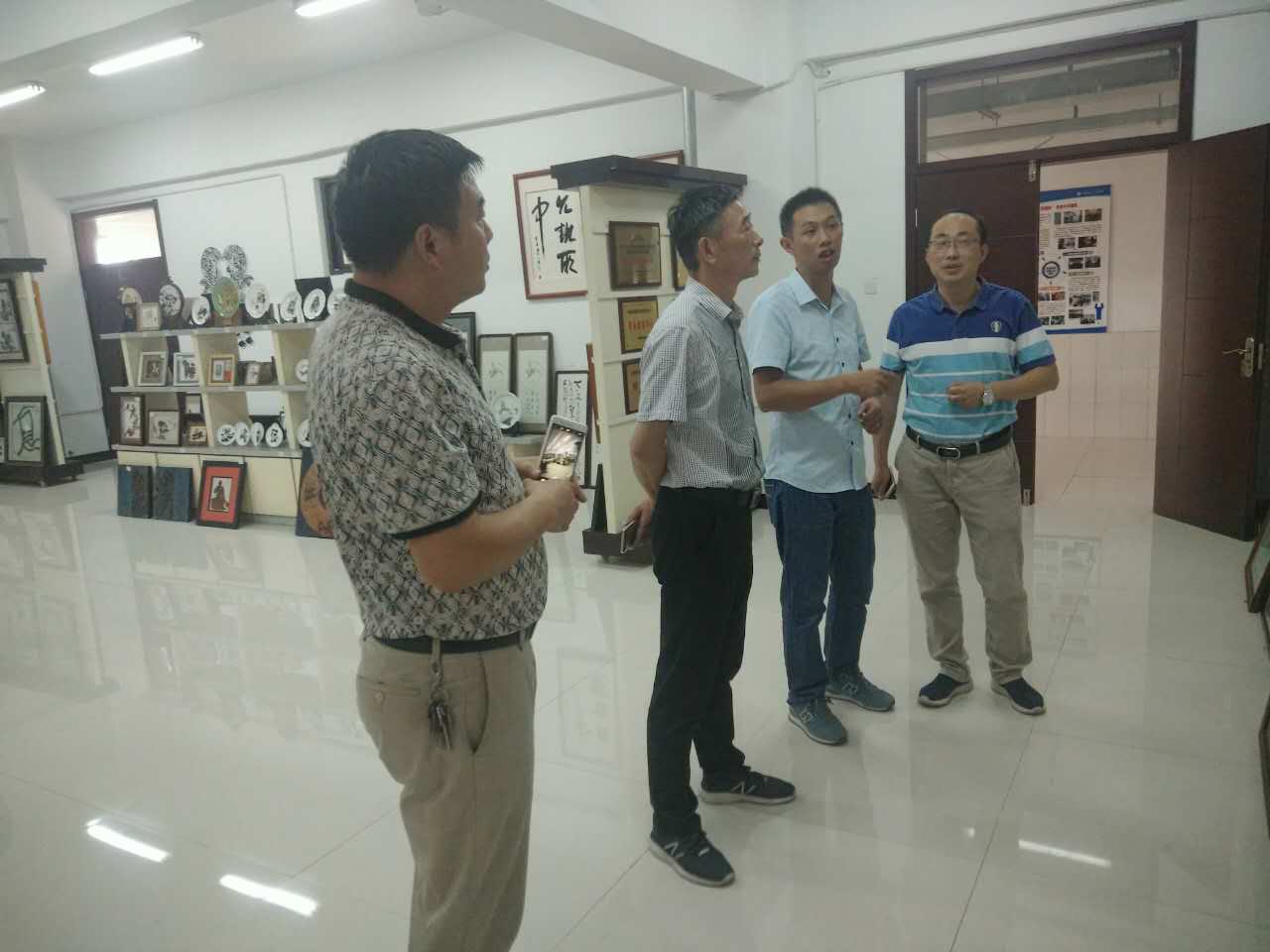 9月15日下午,芜湖机械工程学校校长王心良带队前往安徽机电职业技术学院芜湖铁画非遗传承基地参观学习。随同参观的有芜湖机械工程学校副校长刘琳,招生就业办公室副主任陈冲锋。