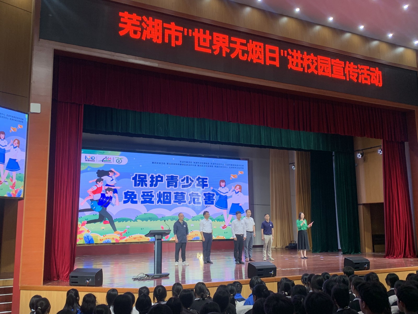 芜湖市疾控中心健康宣教科科长李喆为大家讲授健康科普教育课,向大家普及烟草对健康的危害。授课内容丰富,案例图片触目惊心,学生们听得聚精会神,警示青少年远离烟草的作用显著。讲座中还安排了有奖问答环节,大家踊跃答题,气氛热烈。