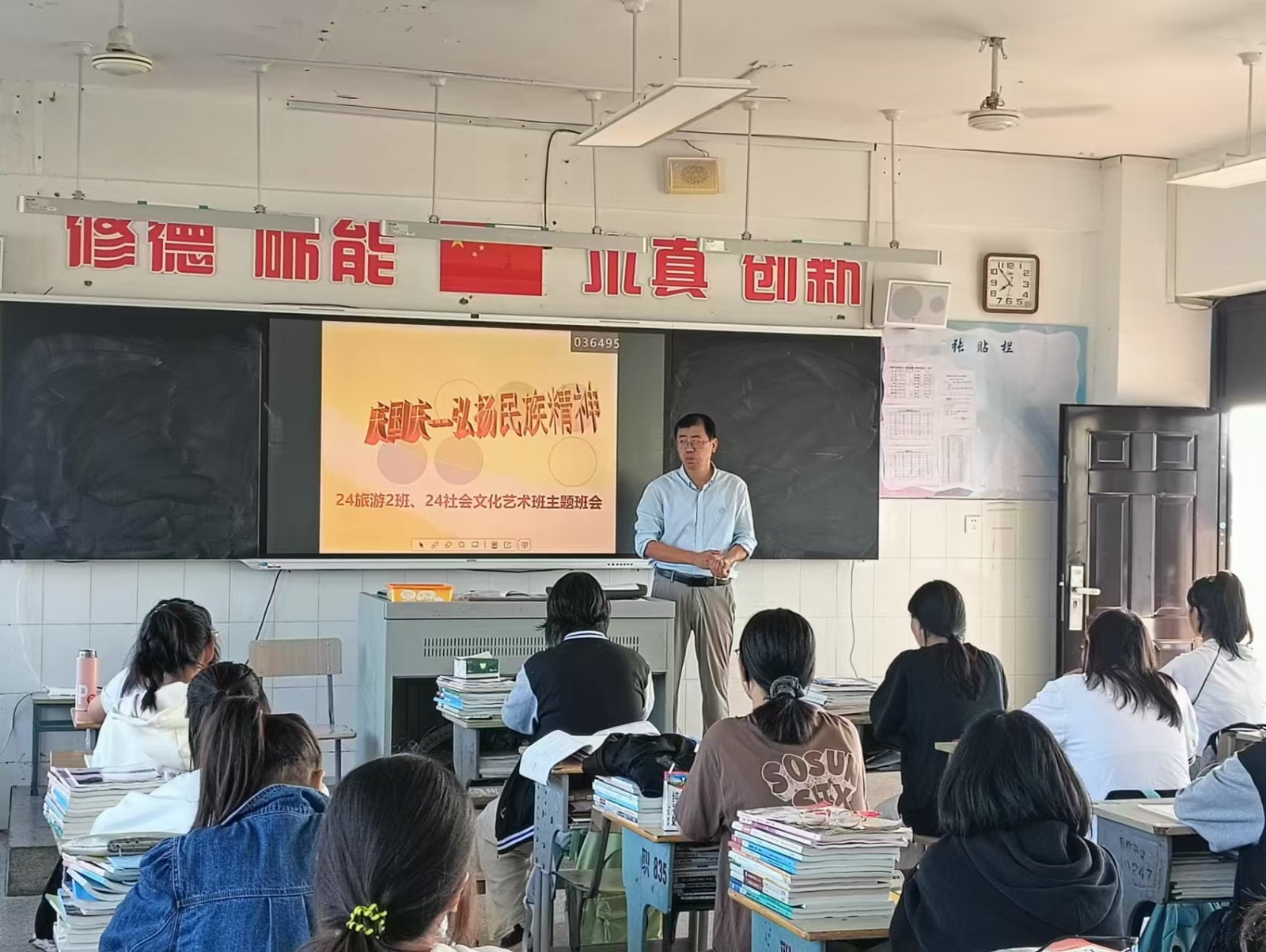 9月30日,全校各班级开展了“庆国庆,弘扬民族精神”主题班会,班主任们精心准备,通过图片、视频等资料,向学生们讲述了新中国成立以来75年的辉煌成就和英雄事迹,激发学生们的民族自豪感和爱国之情,进一步加深对民族精神的理解。