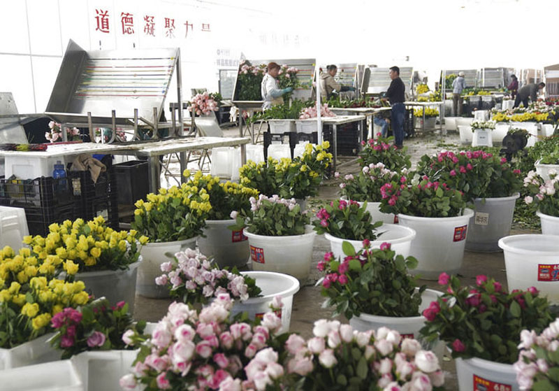 玉龙雪山脚下的云南丽江现代花卉产业园,各色花朵竞相盛放。