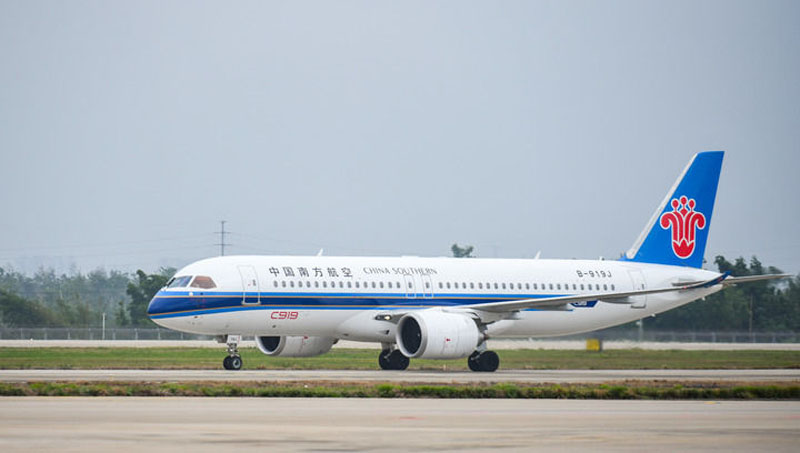 2024年12月11日,由C919执飞的中国南航CZ6786航班在海口美兰国际机场降落,国产大飞机C919在海南的商业飞行“首秀”顺利完成。(新华社记者 杨冠宇/摄)