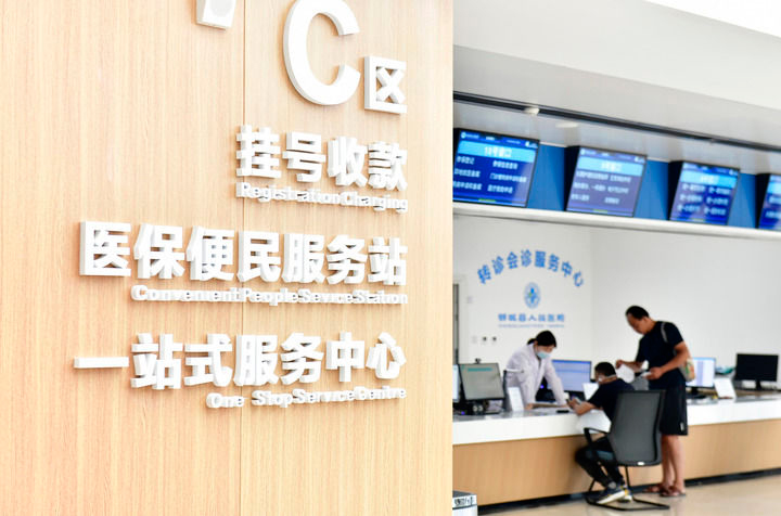 2025年8月21日,在山东省菏泽市郓城县人民医院医保便民服务站,居民在办理医保业务。(新华社记者 郭绪雷/摄)