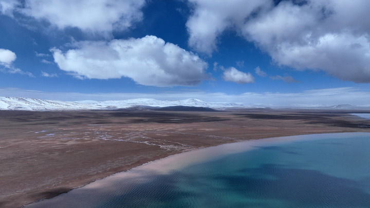 青海三江源国家公园长江源园区可可西里卓乃湖一角(2023年6月17日摄,无人机照片)。(新华社记者 张宏祥/摄)